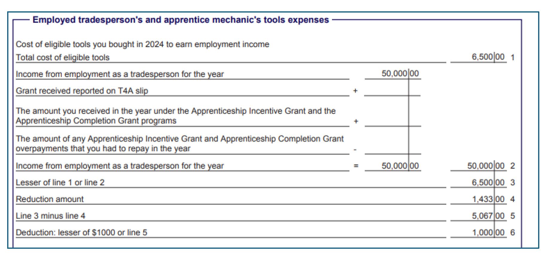 If you are a salaried tradesperson (such as a hairdresser, cook, plumber, or apprentice mechanic), complete this form to claim a deduction for eligible tools purchased during the year. Eligible apprentice mechanics can also claim an additional deduction for tools acquired in the same year on this form. To claim tradesperson or apprentice expenses, you must have a signed Form T2200 (federal) and Form TP-75.2-V (Quebec) from your employer. Tradespersons or apprentices can claim the following common expenses: