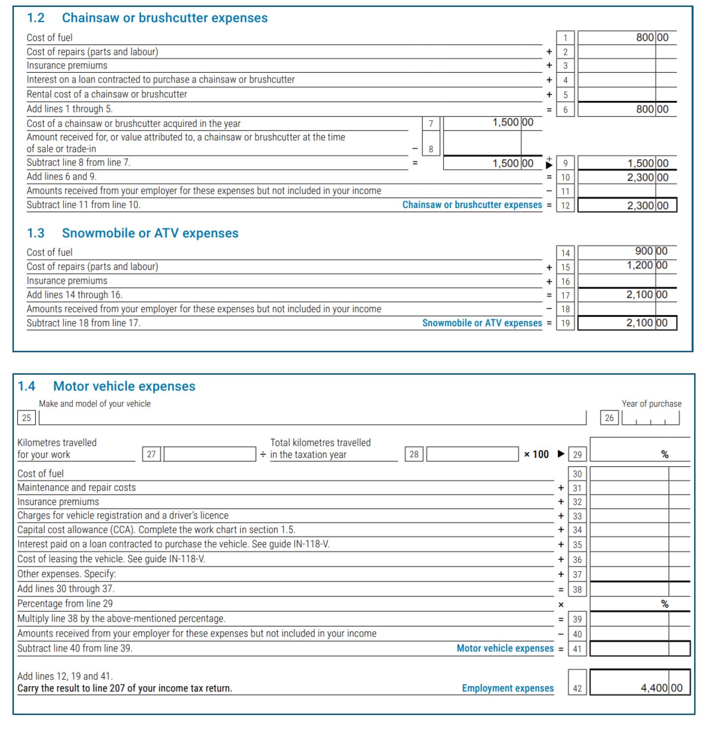 Marc Leblanc is a forestry worker. He purchased a chainsaw for $1,500, spent $800 on chainsaw fuel, $900 for ATV fuel, and $1,200 for ATV maintenance expenses.