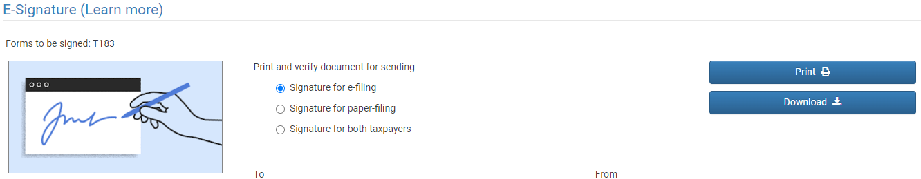 In the case of “Signature for both taxpayers”, you will be required to enter the details for both taxpayers: