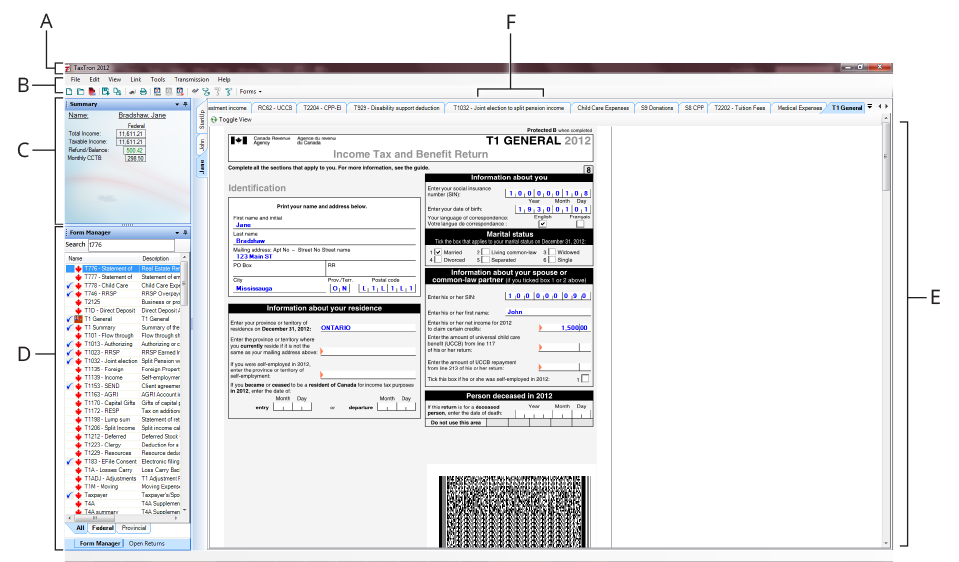 A. Menu Bar B. Button toolbar C. Summary pane D. Forms Manager pane